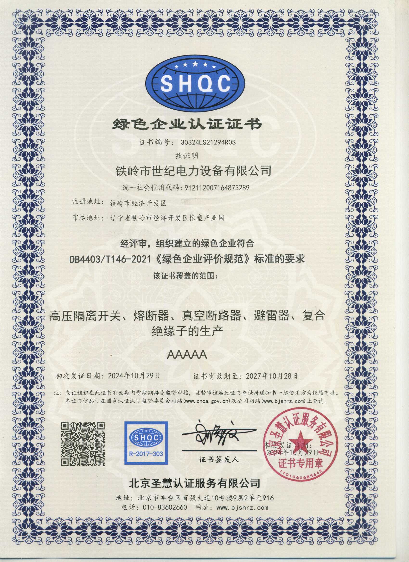 綠色企業(yè)認證證書